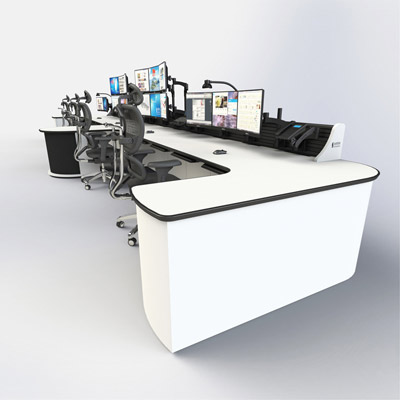 舒適系列調度集中控制臺定制設計應用于大型集中控制調度中心,全敞開式簡潔干練的造型極富現代科技感,人造石臺面更讓集中調度控制臺定制別具一格的風格,為控制中心注入一種氣質..